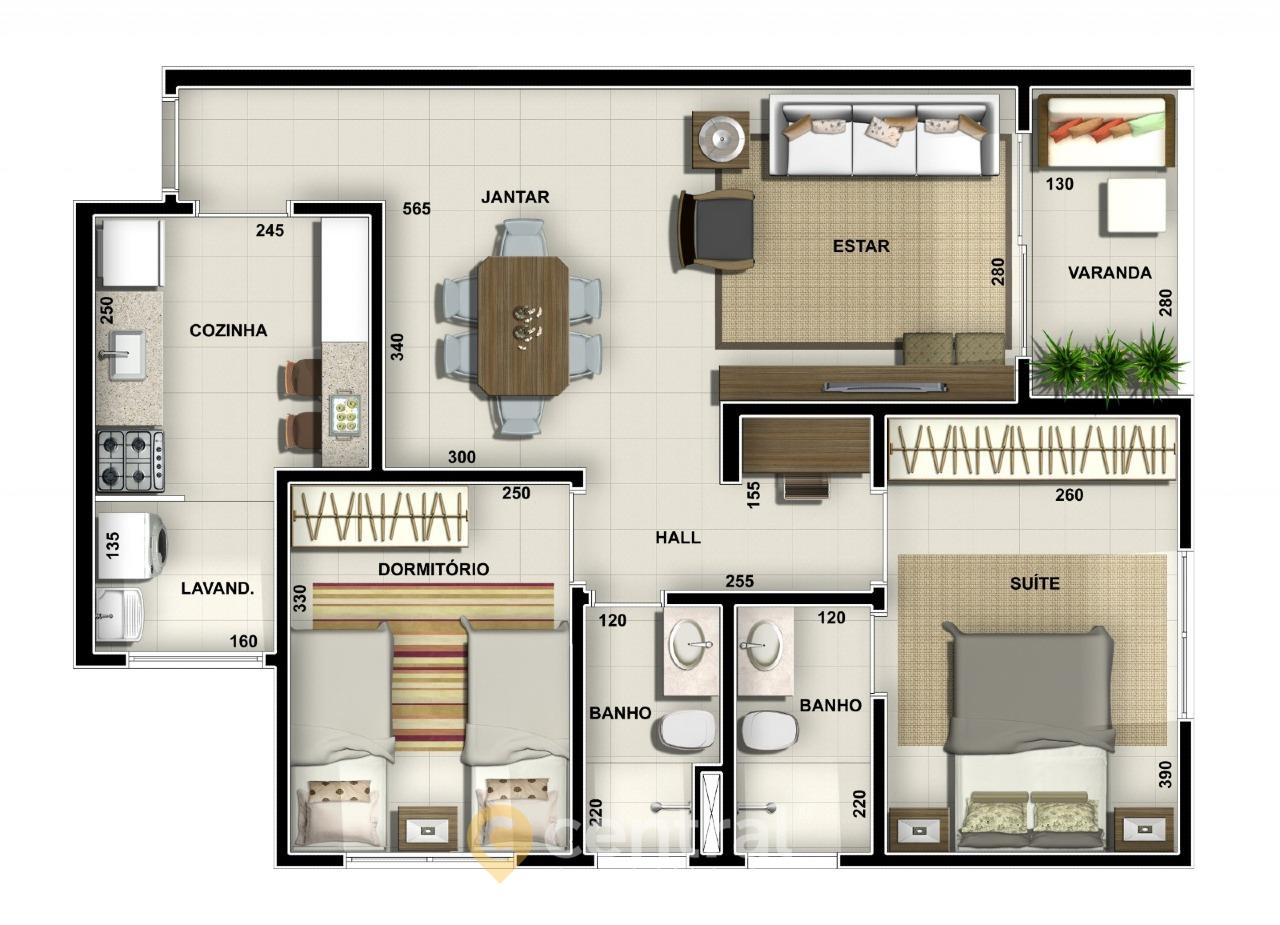 Apartamento em frente a praça Luiz Zuiani com 2 dormitórios, cozinha repleta de armários, sala de 2 ambientes com sacada, 2 vagas de garagem., andar alto, repleto de armários .